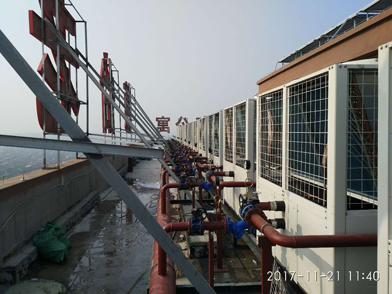 解决方案:与设计院进行沟通协调,将原太阳能热水系统优化,增加空气源热水机组,解决太阳能热水问题,使主机得以顺利放置。