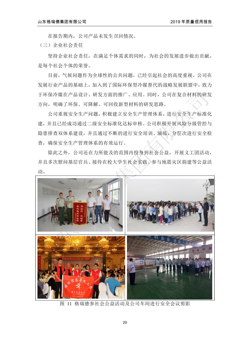 2020年,集团捐赠20万元助力新型肺炎疫情防控。 为紧急赶制防疫应急设备、为疫情定点医院提供通风净化设备,集团1月28日复工,2月17日按照德州市委市政府要求,为济宁任城监狱紧急赶制应急物资。在疫情期间,格瑞德集团勇担重责,为陆军80集团军医院、阳光融合医院等定点医院的隔离病房提供通风净化设备、助力德州市人民医院开发区分院方舱PCR实验室的建设,并获得第二批国家疫情防控重点保障企业称号。