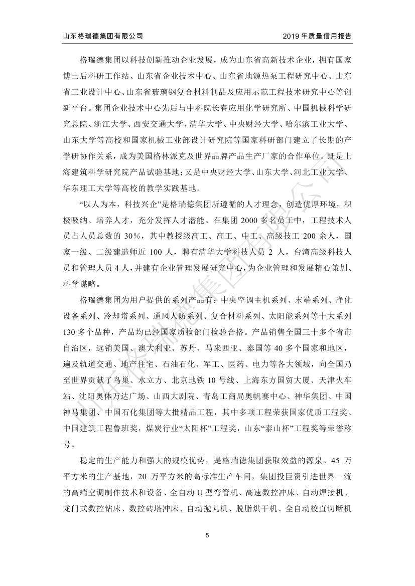 格瑞德1993年建立于山东德州,目前是一家围绕人工环境,横跨新能源、新材料、装备制造、节能环保、信息技术五大战略新型产业的企业集团。格瑞德进行全球化业务运作,产品和服务遍布全国的每一个省市和全球五大洲的100多个国家和地区,广泛应用于基建工程、商业地产、工业制造、农业开发、电子信息、车辆工程、环保处理、医药净化、海洋工程、轨道交通等领域。格瑞德从业人员过万人,在山东、贵州、四川、新疆、内蒙等地建有生产基地,在上海、北京、济南、兰州以及美国洛杉矶建有研发中心。