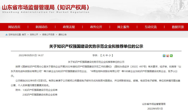 “2022年度知识产权强国建设示范企业”推荐名单