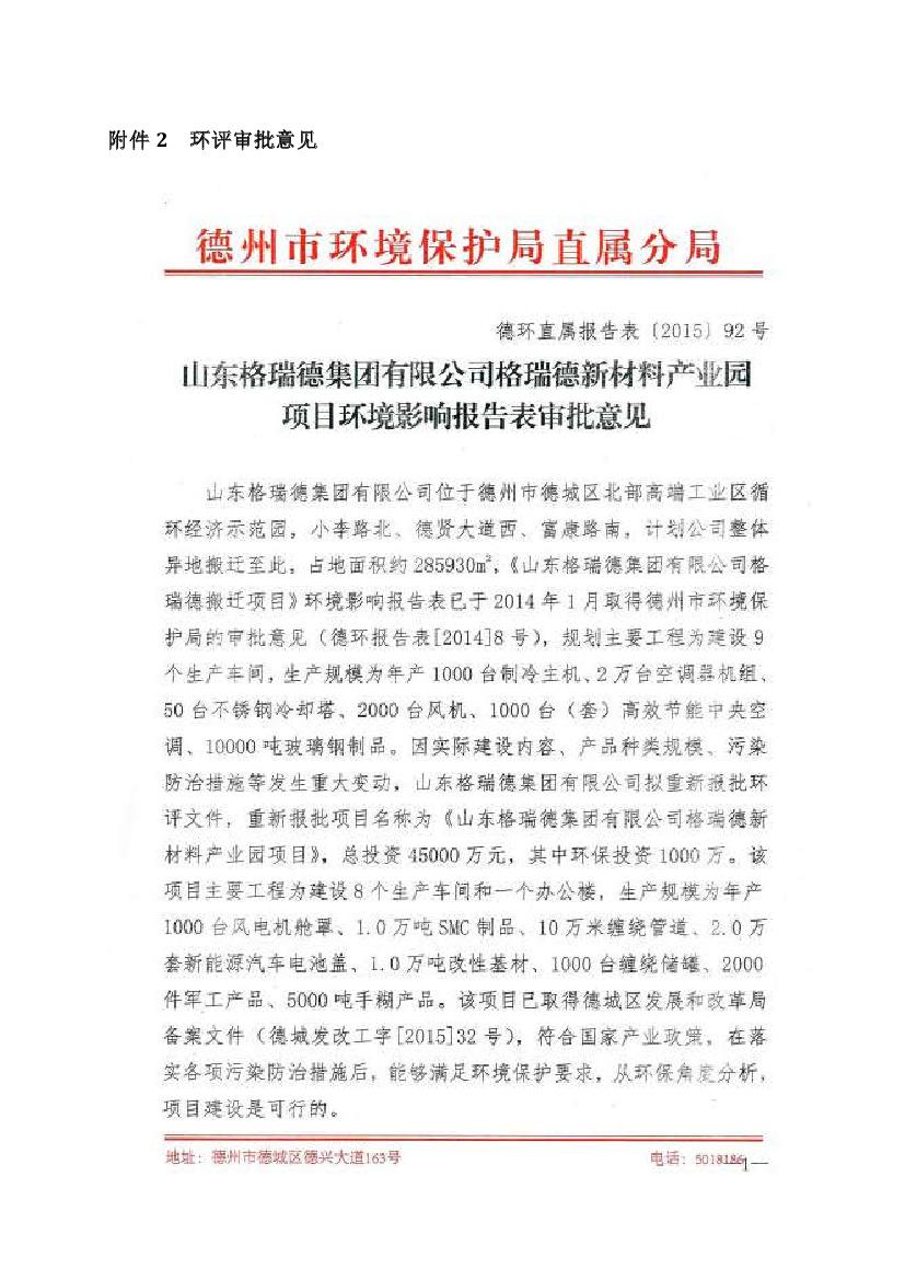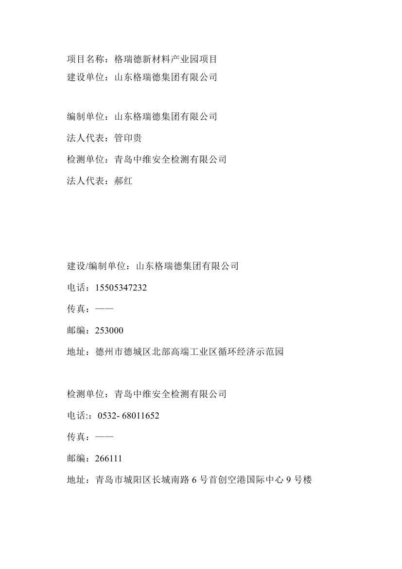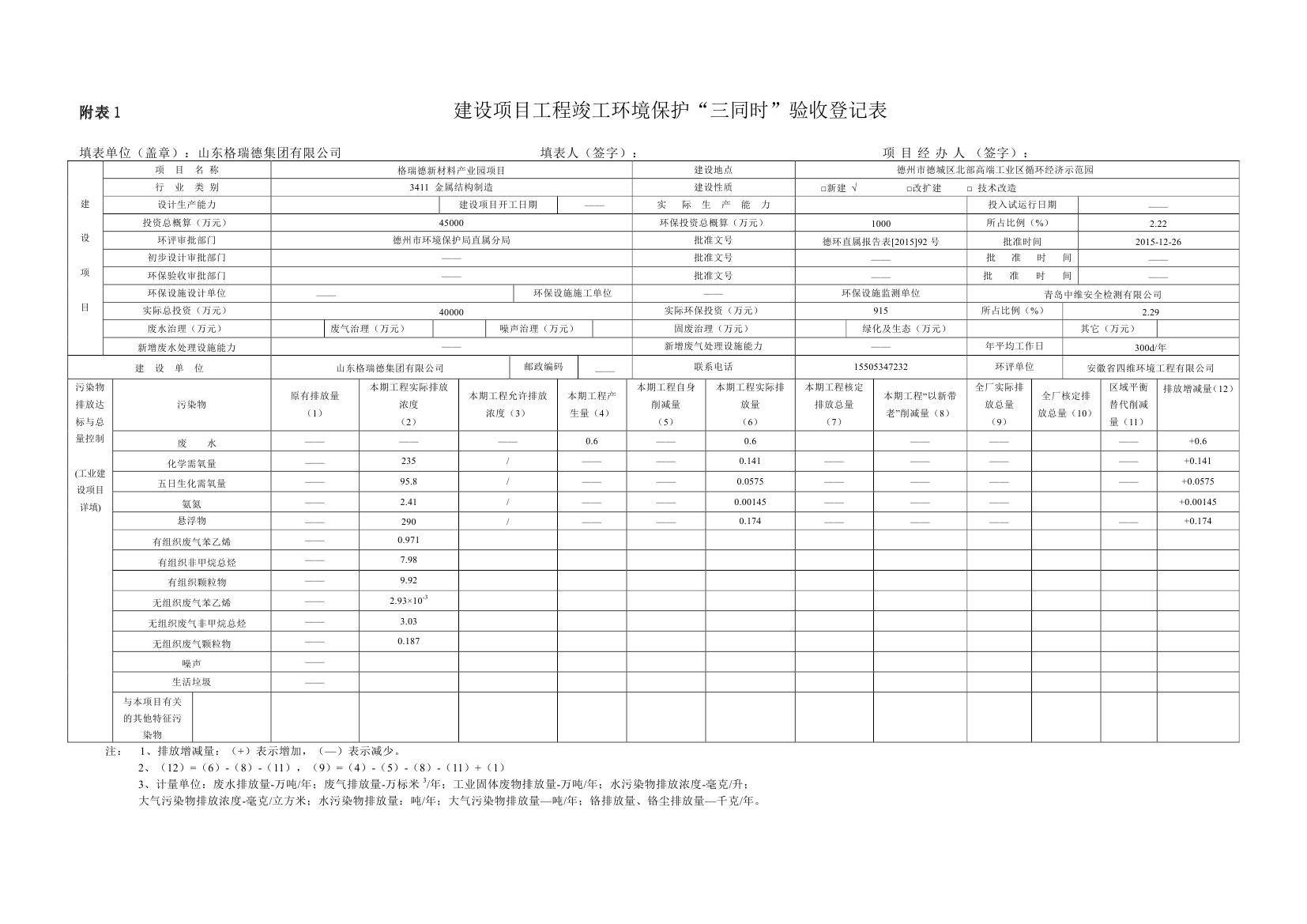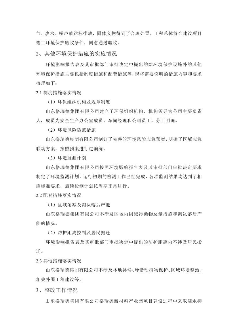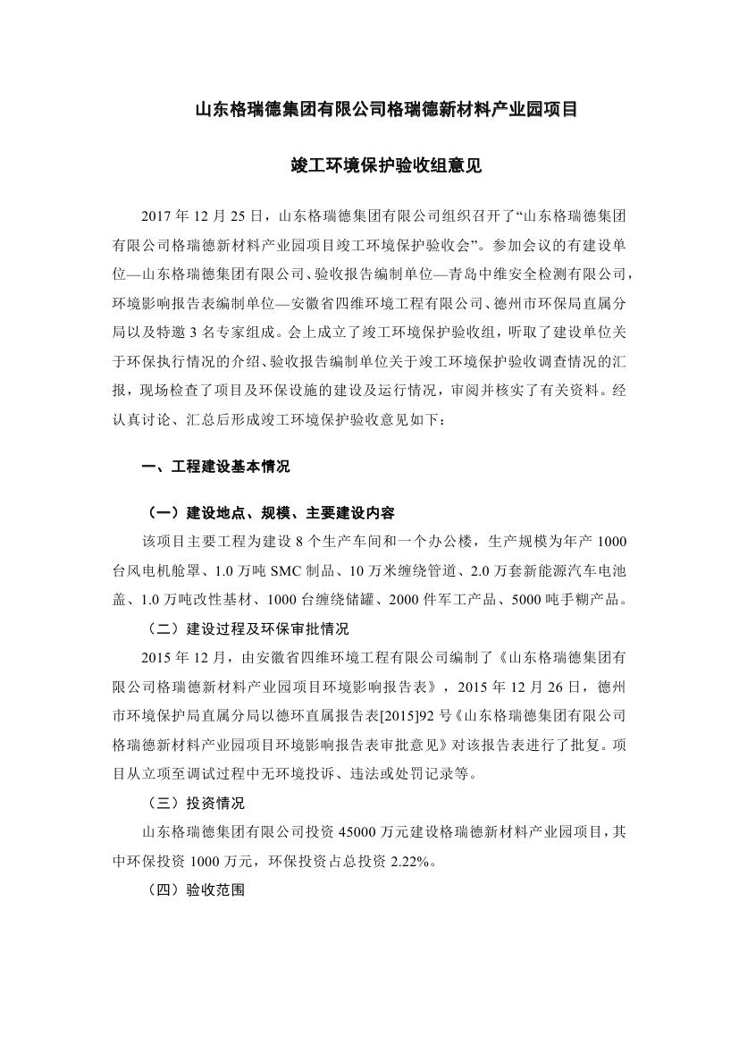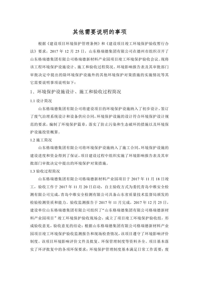 格瑞德新材料产业园建设项目竣工环境保护验收监测报告公示