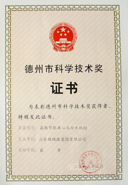 另外,集团高效节能离心式冷水机组还被国家工信部列入《节能机电设备(产品)推荐目录(第五批)》、获得2015年度山东省重大节能奖、2015年度德州市科学技术奖,并于近日通过中国电子节能技术协会电子节能新技术新产品入库初审。