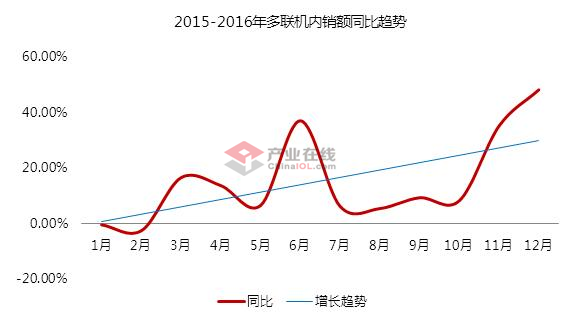2016年中央空调行业走出下滑,重返增长轨迹,但这并不意味着行业已经彻底走出困境。 2016上半年中央空调企业表现相对保守,下半年主动出击方才挽回了部分市场份额。2017全年GDP增速有望恢复到6.5%至7.5%,制造业投资增速在2017年将保持缓慢回升趋势。为避免再次遭遇2016年的窘境,多联机在1月份的市场中表现的格外强势,内销增幅超过15%,明显高于2016年1月份同比增速。