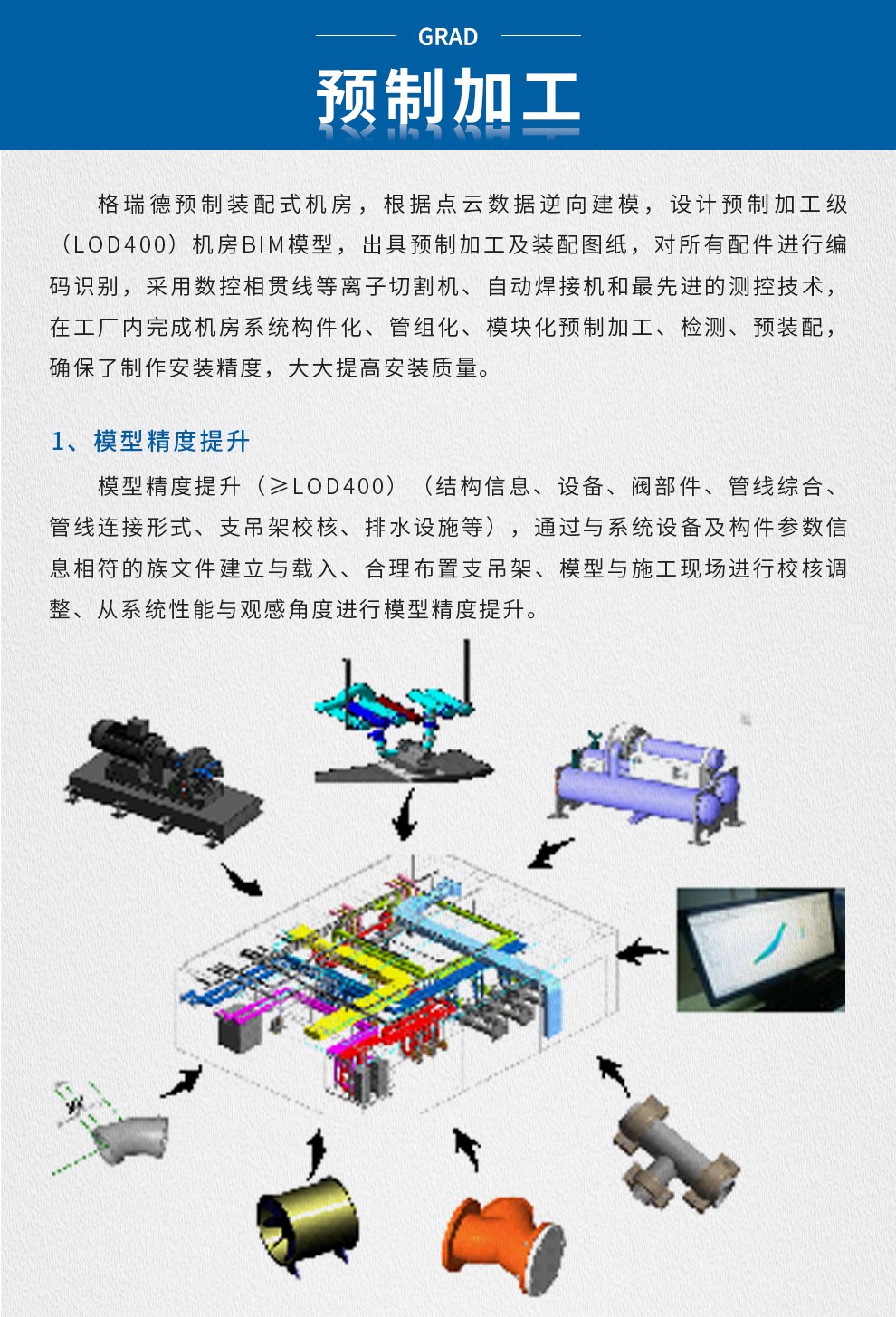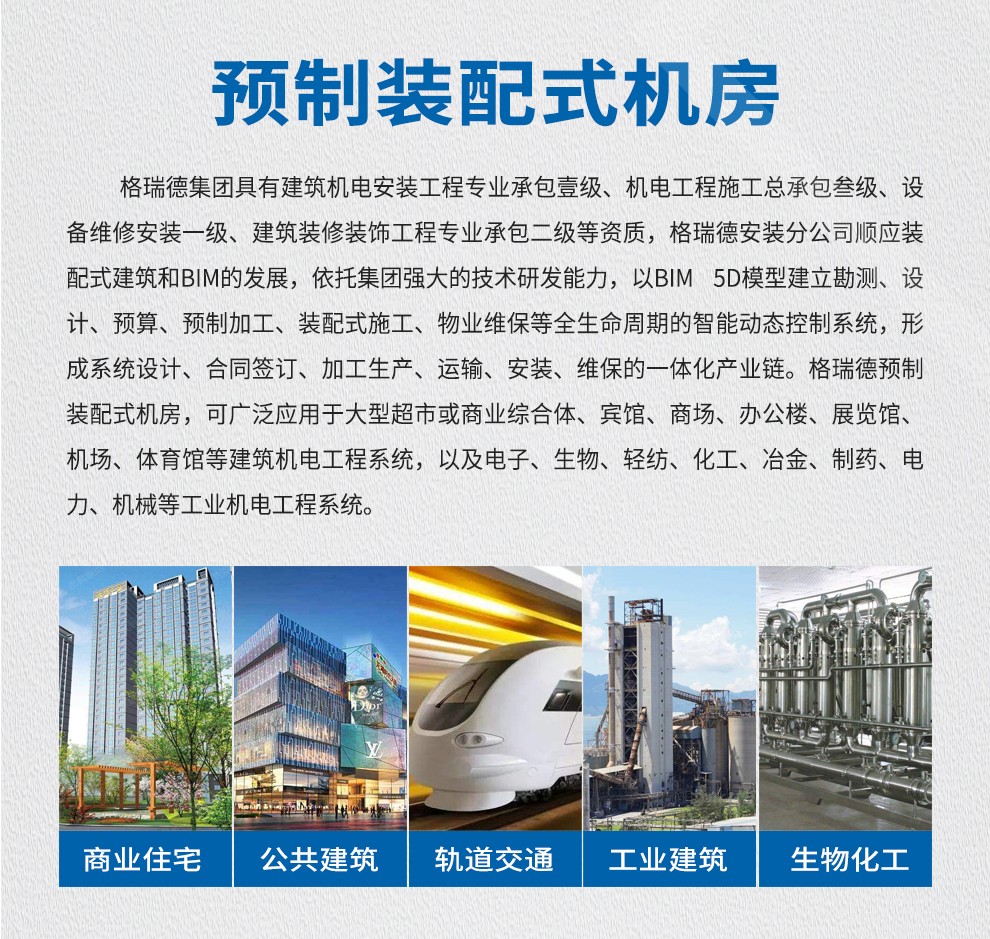 格瑞德致力于让人工环境更美好,通过打造空调工程、通风人防、复合材料、环保工程领域的全过程解决方案来满足客户需求,格瑞德构建了包括品牌规划、系统设计、技术开发、产品制造、整体施工、维护服务、检测认证、人才交流、产业集群的全生命周期产业链和产业生态。