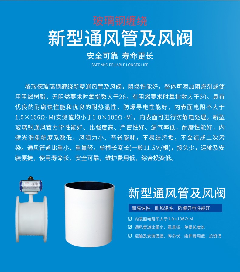 玻璃钢缠绕新型通风管及风阀